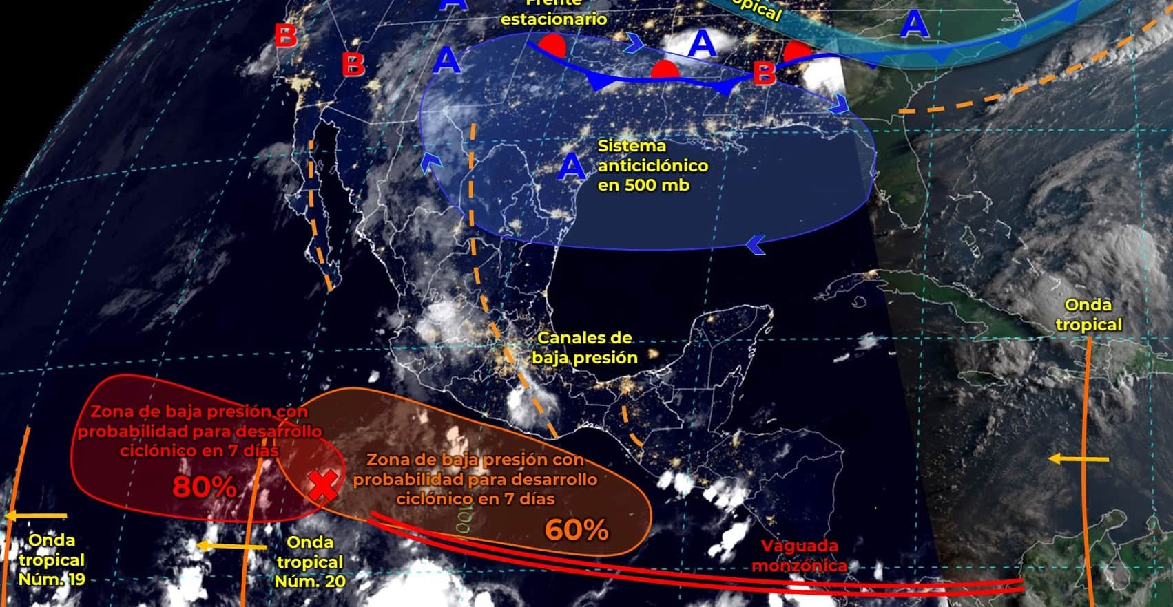 Tres ciclones están formándose en el Océano Pacífico, según el reporte del Servicio Meteorológico Nacional (SMN) se mantiene bajo vigilancia las zonas de baja presión que podrían fortalecerse en los próximos días.