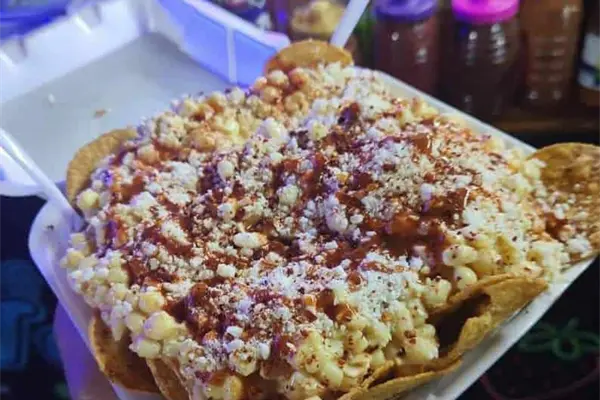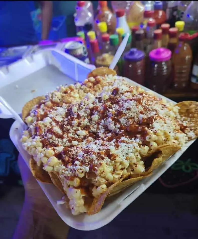 Las tosticharolas son una cama de frituras con aproximadamente 300 gramos de granos de elote cocido que se prepara con mayonesa, chipotle, distintos tipos de quesos, limón, crema y las salsas y aderezos que los comensales puedes agregar a su gusto.