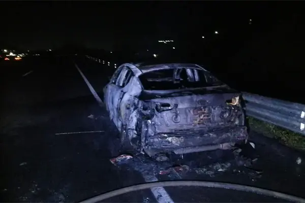 Al llegar al lugar observaron un vehículo Hyundai blanco abandonado e incendiándose.