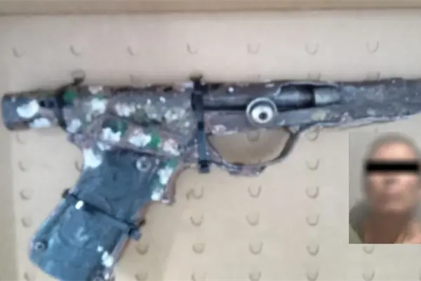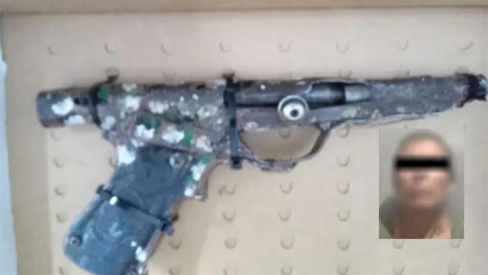 Le aseguraron una pistola hechiza, con cachas de plástico negras, la cual traía fajada a su cintura del lado derecho, y en una de las bolsas de su pantalón le encontraron una caja con 39 cartuchos calibre 22 MM.
