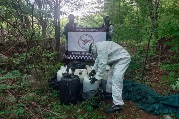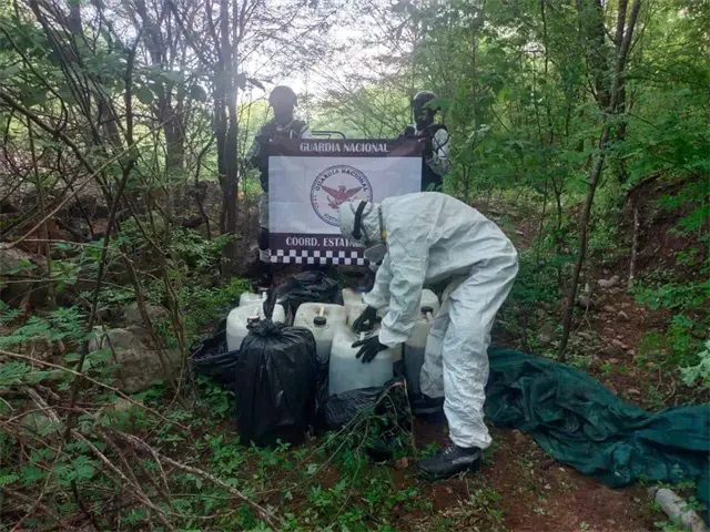 Fue en una zona montañosa donde se localizaron los precursores químicos utilizados presuntamente para la elaboración de drogas sintéticas.