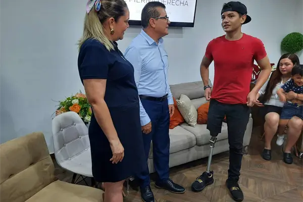 Con la prótesis que este miércoles recibió el joven, de 16 años de edad, le permitirá llevar una vida 100 por ciento normal; montar a caballo, andar en bicicleta, jugar fútbol (a su ritmo), entre otra actividades.