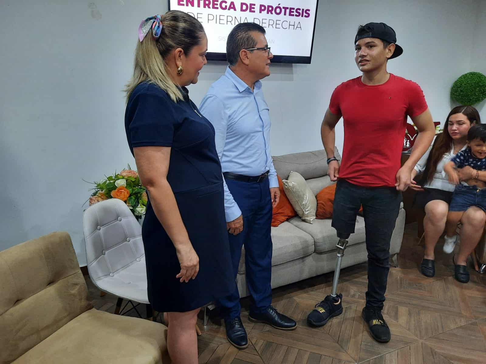 Por su parte, María Teresa Apodaca Muñoz, presidenta del Sistema DIF Mazatlán, dio de los detalles de cómo fue el proceso para que Geovani recibiera su prótesis de pierna.