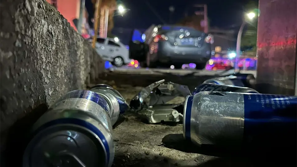 En el lugar el hombre que provocó el accidente se observaba a simple vista en estado de ebriedad, incluso a un costado del vehículo quedó una hielera de unicel rota y al menos siete latas de cerveza cerradas, además de un fuerte olor a alcohol, al reventarse algunos botes.