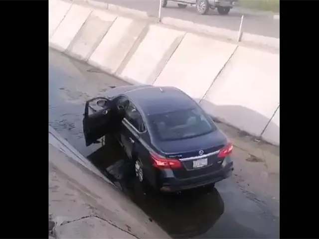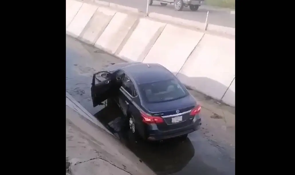 Un vehículo terminó al interior del canal de la avenida Santa Rosa, en el fraccionamiento Valle Dorado cerca de una conocida tienda de auto servicio, durante este mañana.
