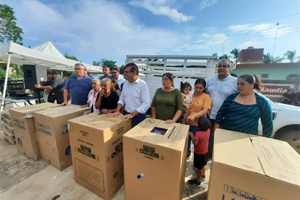 En la gira de trabajo del alcalde, se hizo la entrega simbólica a 5 personas con el apoyo de lavadoras y cemento, el resto se les entregará en el trascurso de la semana.