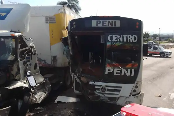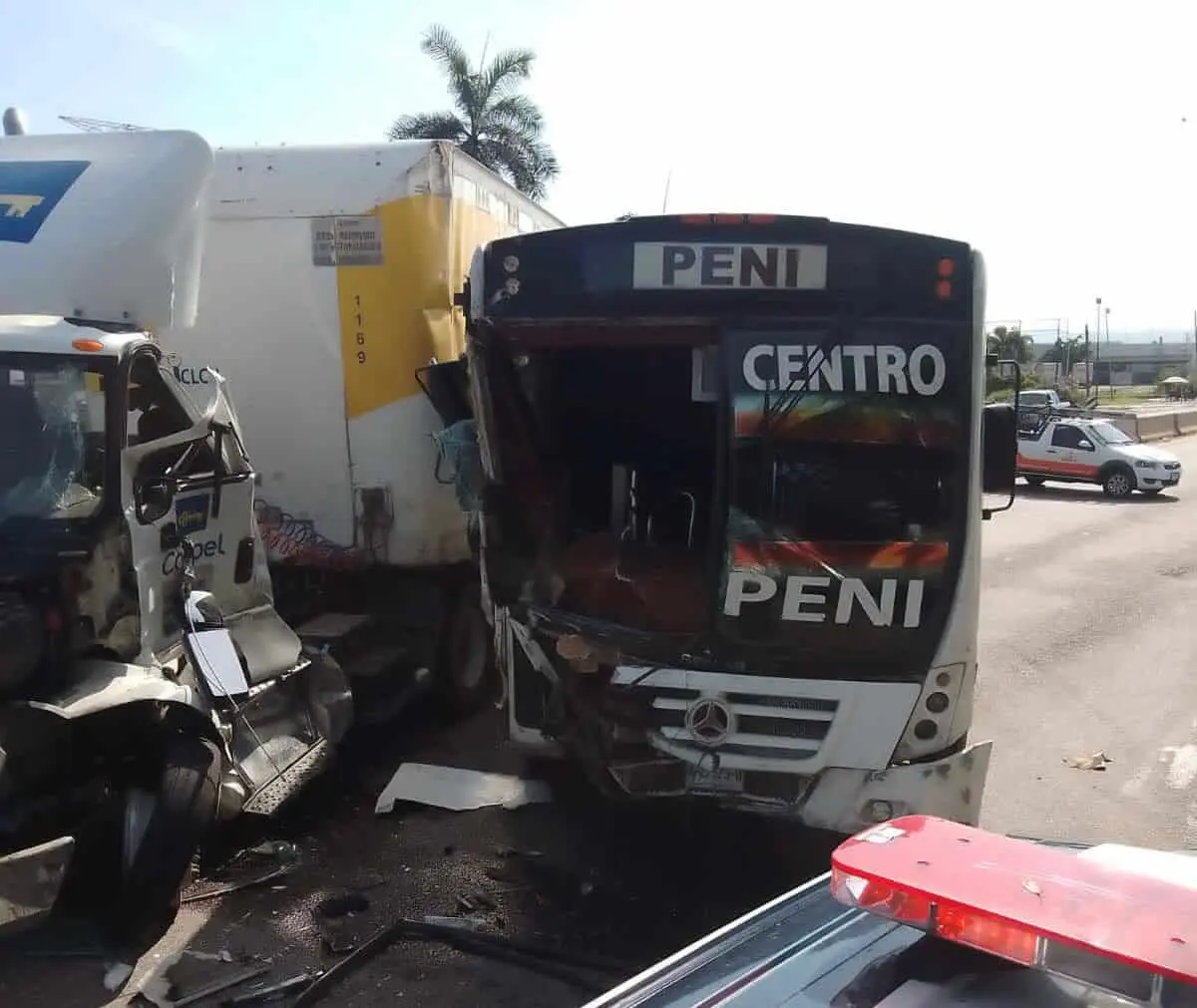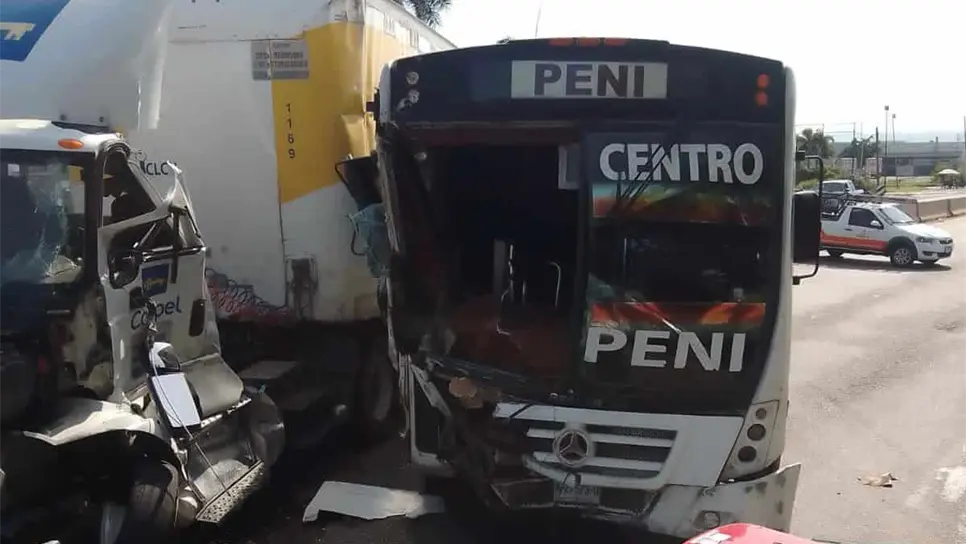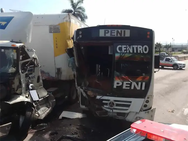 Era un transporte público de la ruta Peni-Centro y una unidad de conocida empresa son los involucrados en el accidente, el cual se registró en las inmediaciones de donde se ubicaba una caseta de cobro sobre la rúa federal y que ahora es conocida como caseta vieja.