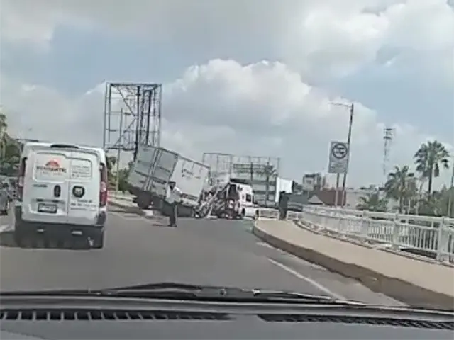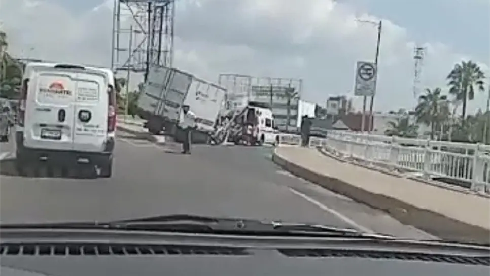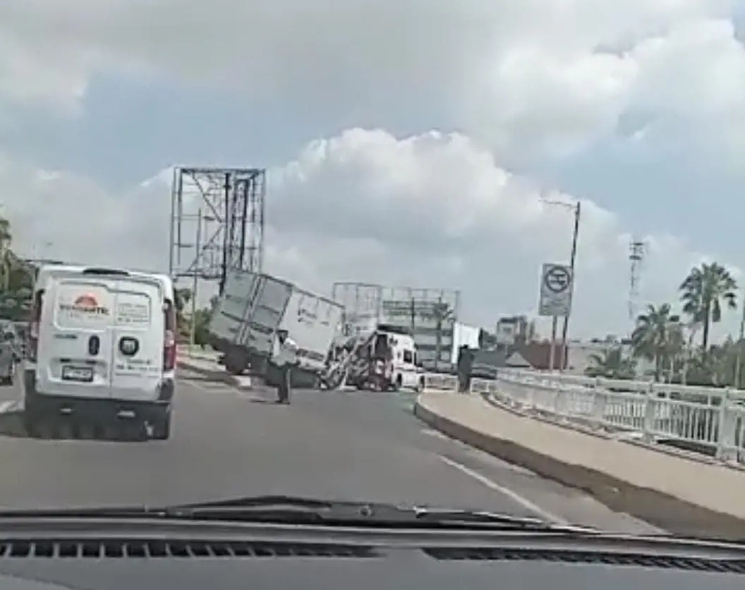 Camión de carga choca contra el barandal del puente José Limón en Culiacán