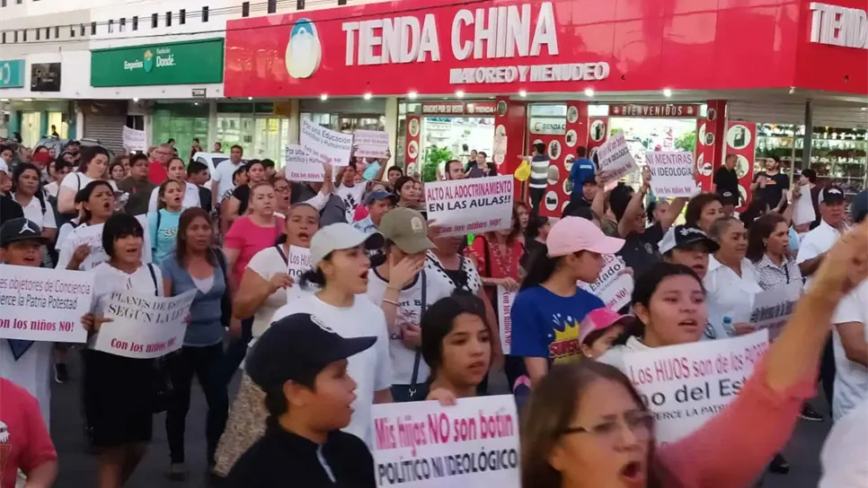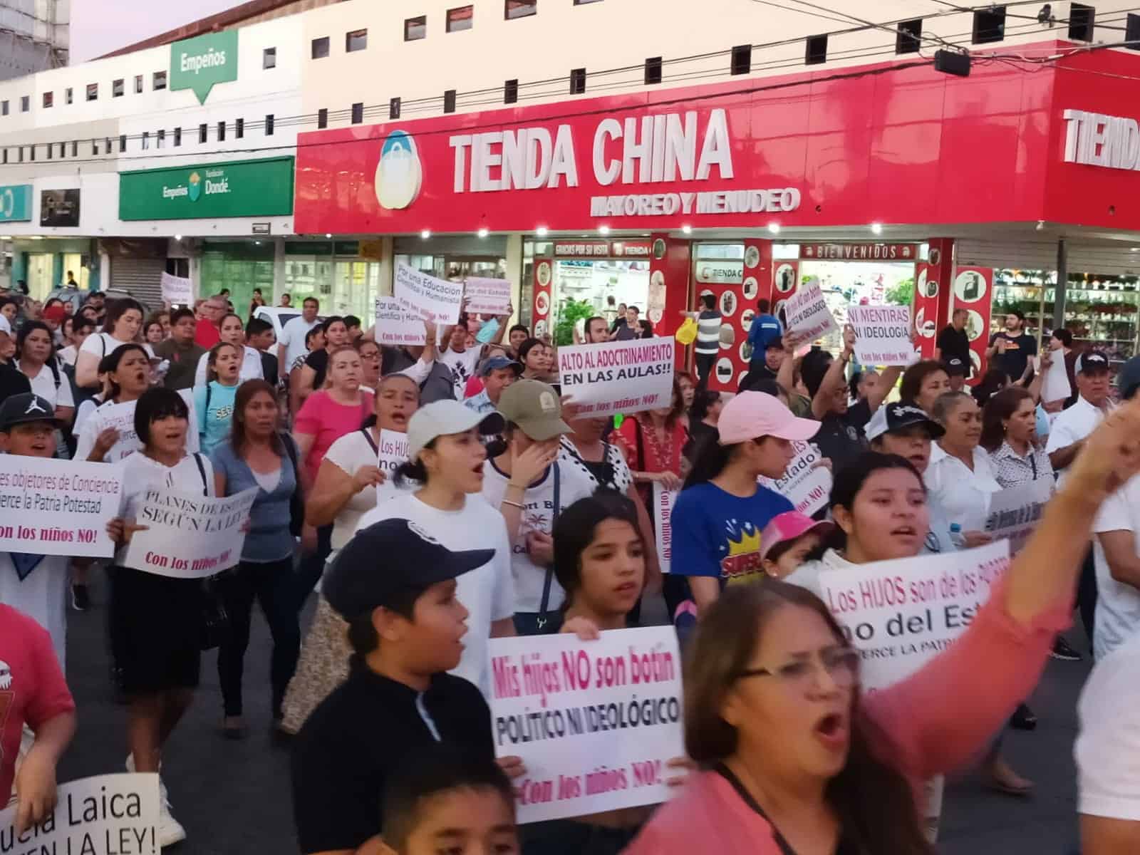En Los Mochis marcharon en contra de los libros de texto gratuitos distribuidos por la Secretaría de Educación Publica en México, acusando de adoctrinamiento, sexualización y exposición a los menores de edad.