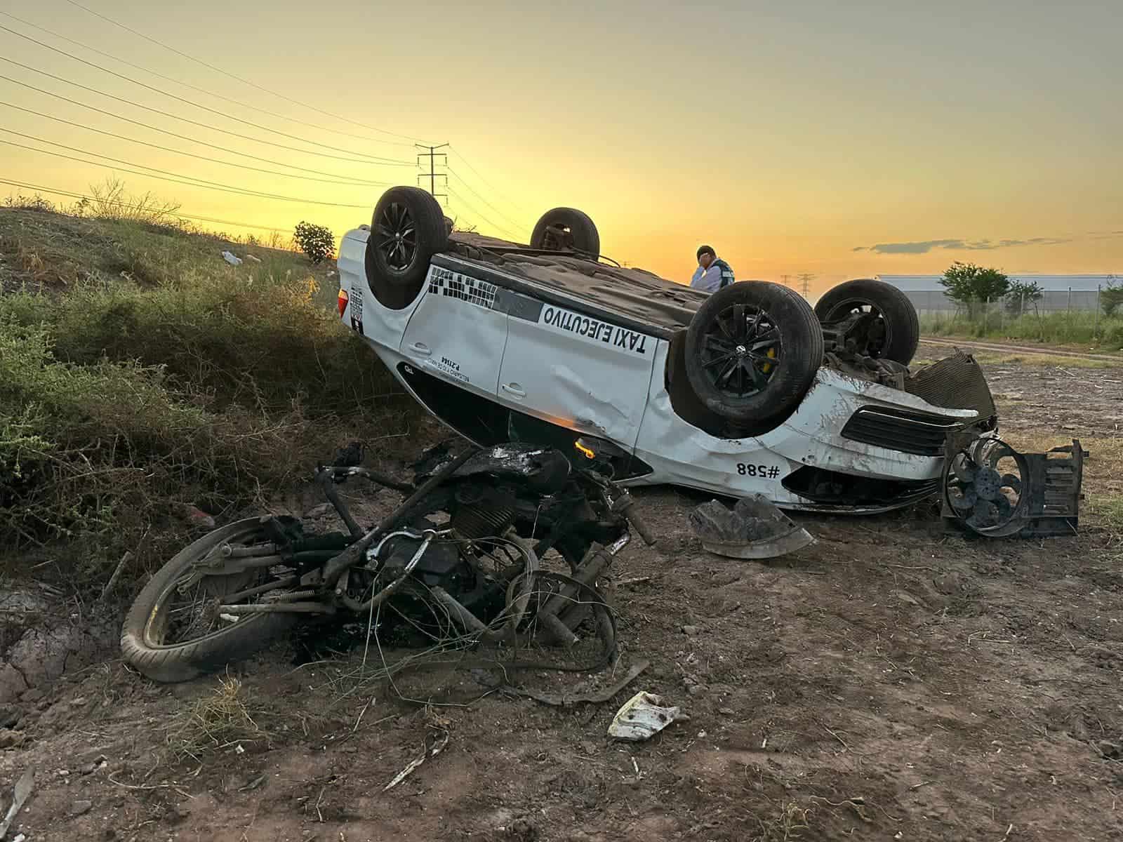 Muere motociclista tras derrapar en la México 15; taxista vuelca al chocar con la moto
