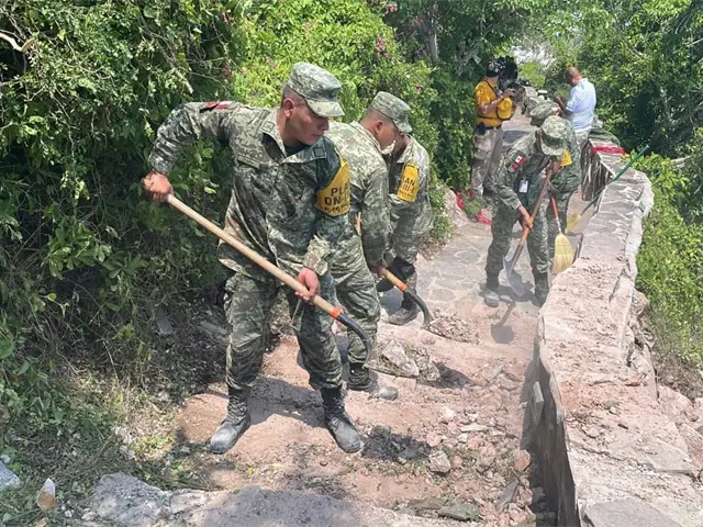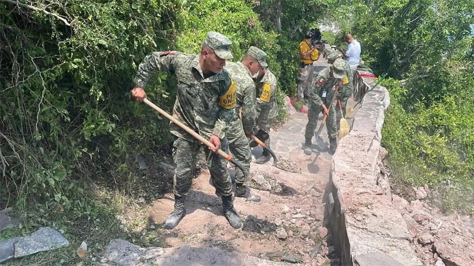 Derivado del Operativo Mazatlán Seguro y como parte de las actividades del Plan DN-III-E y en apoyo a la población, el personal militar en coordinación con Protección Civil Municipal de Mazatlán realizaron los trabajos para retirar las piedras que obstruían el camino peatonal al Faro de Mazatlán.