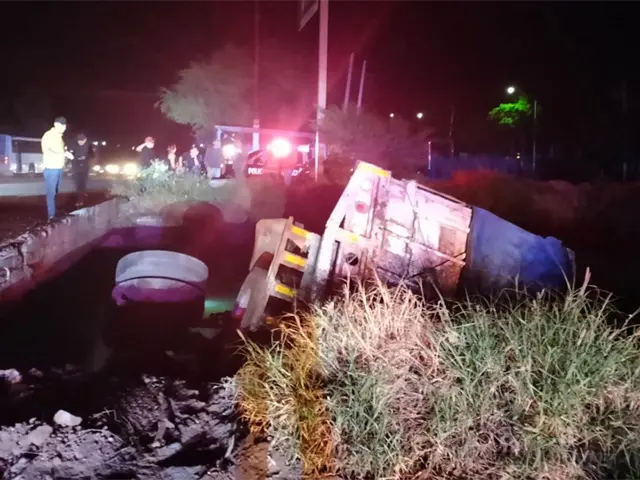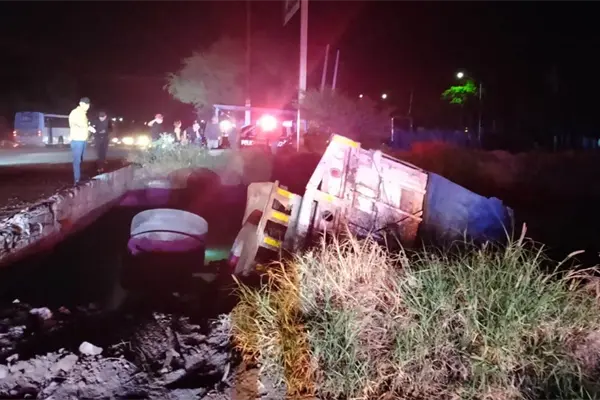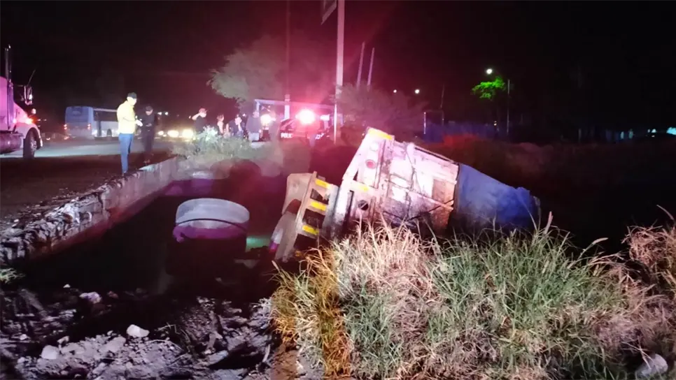 Según información recabada, el chofer de un tractocamión tipo torton regresaba del puerto de Topolobampo cargado con fertilizante de fósforo y se dirigía hacia la carretera internacional México 15, pero al llegar al puente que atraviesa el canal Lateral 18, perdió el control del volante y se precipitó a la obra hidráulica.