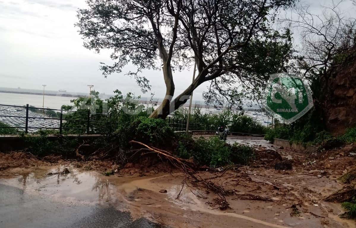 Un árbol que se ubica sobre la calle Venustiano Carranza, de la colonia Centro de Mazatlán, terminó por caer tras las fuertes lluvias registras.