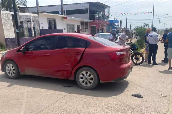 Un motociclista terminó lesionado luego de impactarse contra un automóvil Kia Rio rojo, en el cruce de las calles Jazmín y Azalea, de la colonia Flores Magón, en Mazatlán.