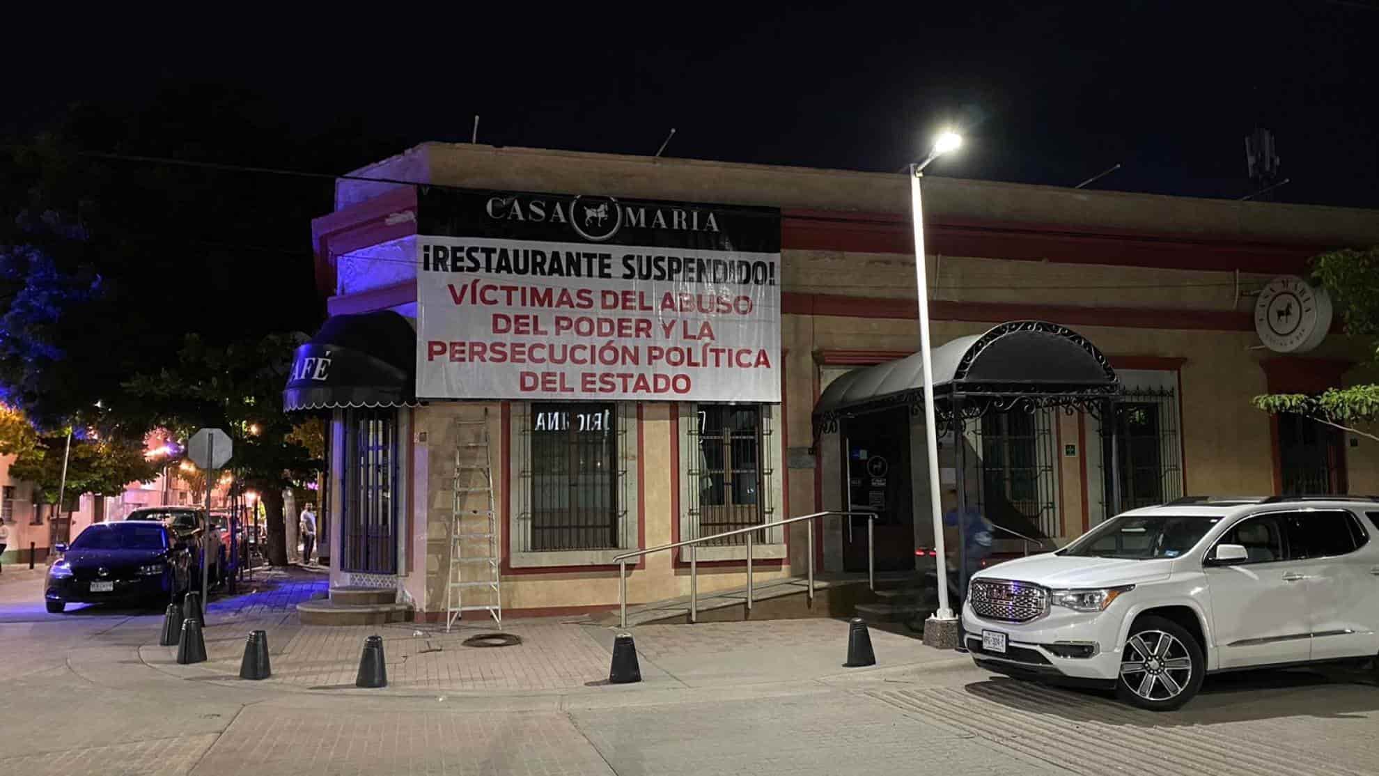 Afuera Casa María no hay ningún sello de clausura alusivo a la Comisión Estatal para la Protección Contra Riesgos Sanitarios; sin embargo, en la fachada del restaurante fue colocada una manta con la leyenda «¡RESTAURANTE SUSPENDIDO! VÍCTIMAS DEL ABUSO DEL PODER Y LA PERSECUCIÓN POLÍTICA DEL ESTADO».
