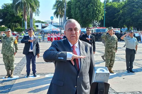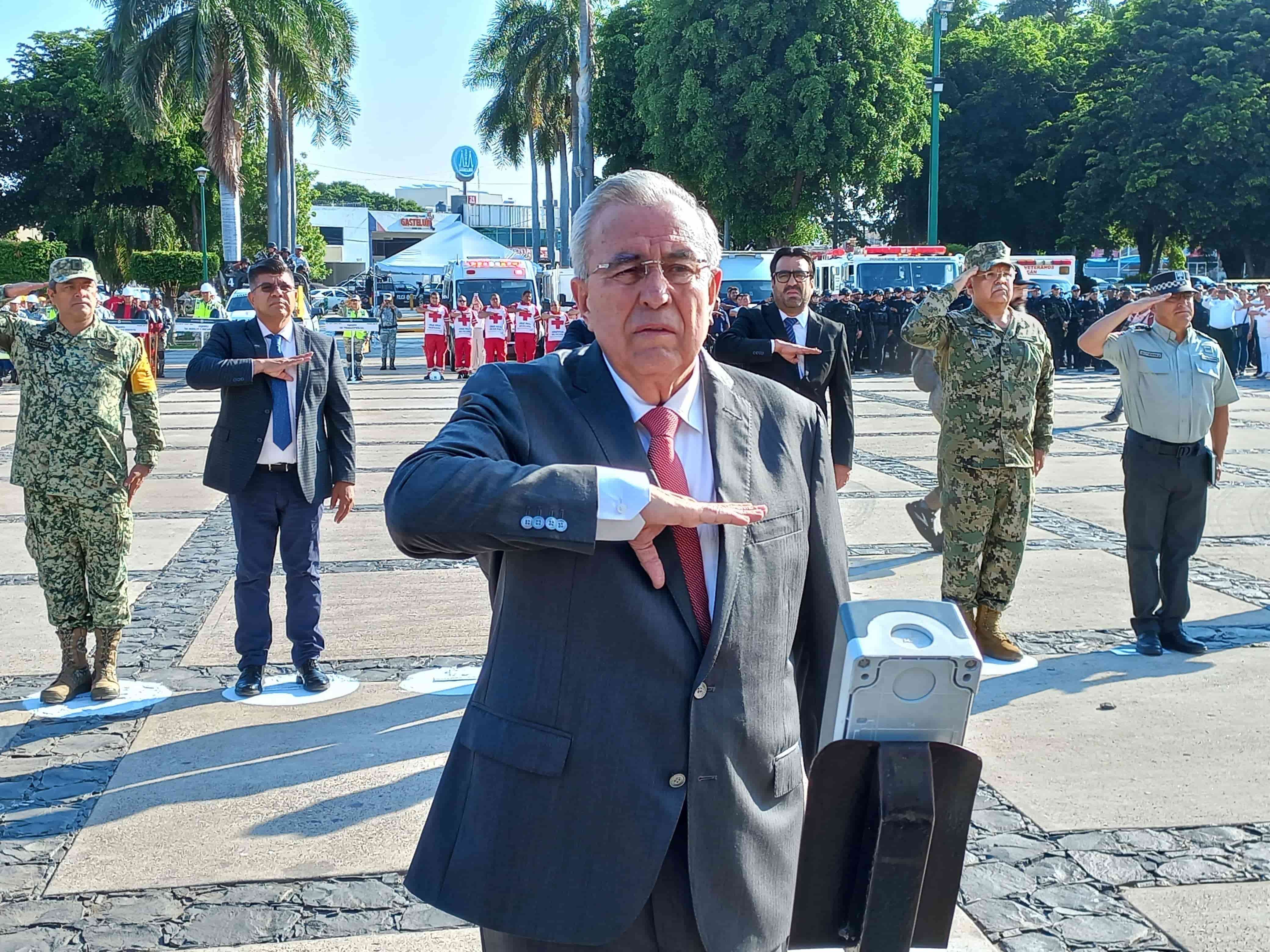 Durante el acto también se celebró el día Nacional de Protección Civil, en la Plaza Cívica del Palacio de Gobierno.