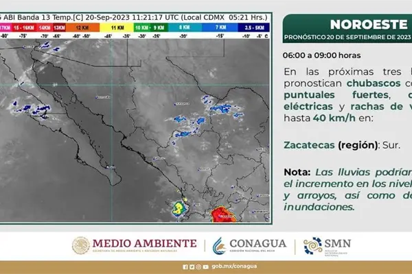 Lluvias puntuales fuertes y descargas eléctricas para Sinaloa este miércoles, 20 de septiembre