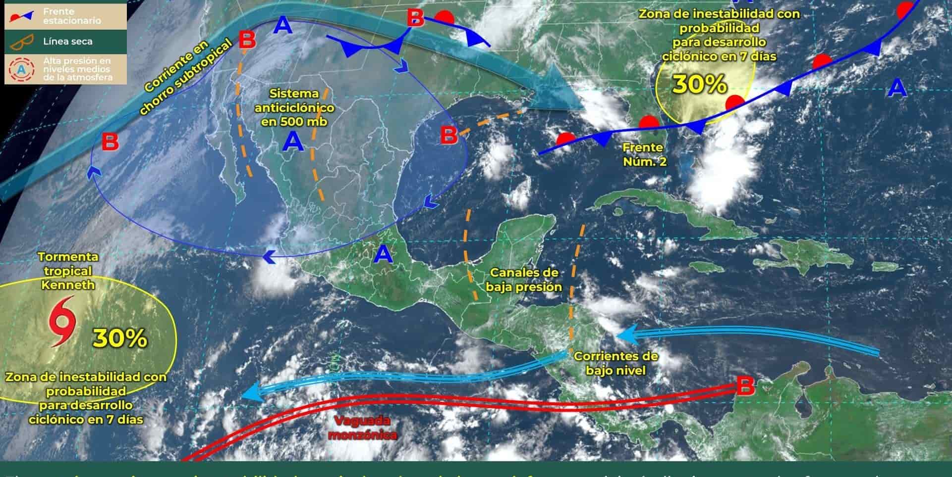 Es probable sobre el sur de Sonora y norte de Sinaloa se registren los valores más altos de 43 a 48°C; en el Bajío se prevén 28 a 34°C, mientras en el Valle de México y estados aledaños rondarían de 22 a 30°C en promedio.