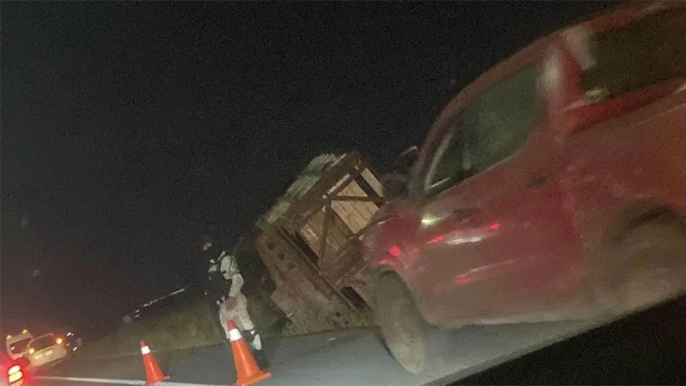 Vuelca camión cargado con ganado en La Costerita, en Culiacán