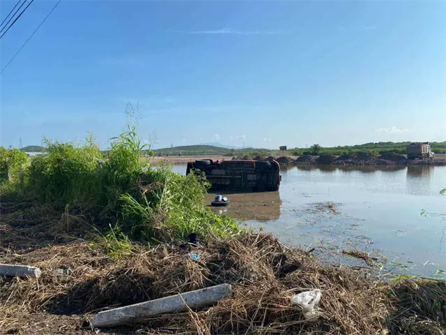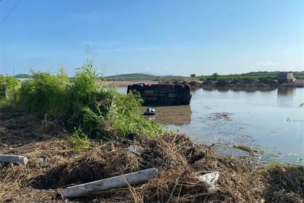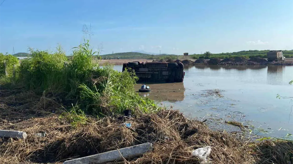 El vehículo salió de la carpeta asfáltica para después de dar varias volteretas, terminara al interior de una laguna.