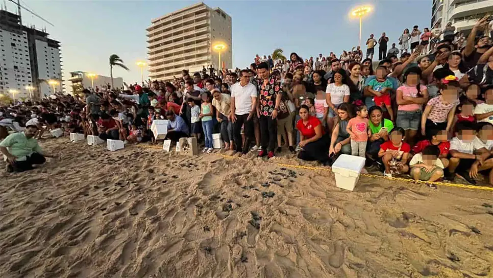 En medio del atardecer, decenas de personas viven la experiencia de liberar tortugas en playas de Mazatlán