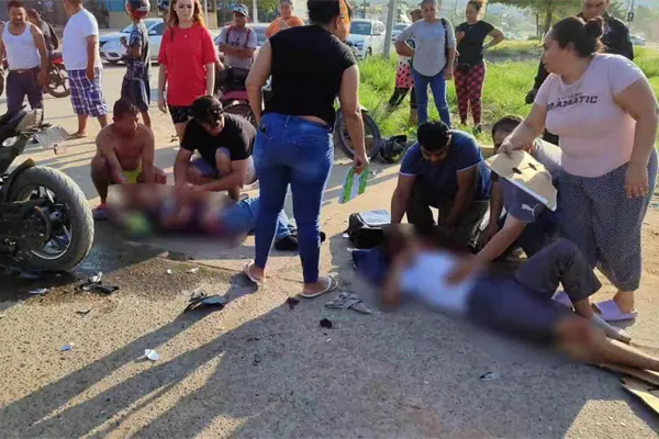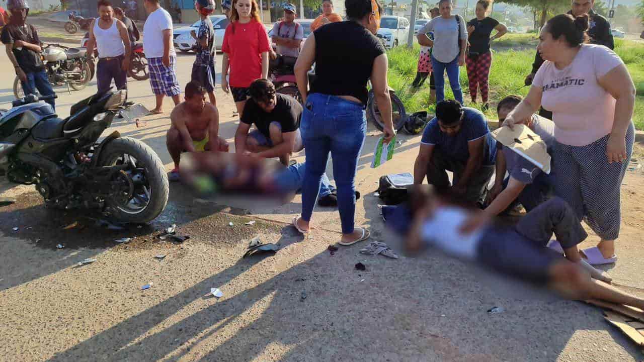 Tras impacto, ambos motociclistas terminaron tendidos en el asfalto, con algunas lesiones visibles.