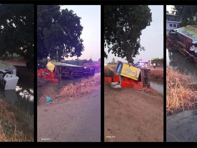 Vuelca camión cargado con camarón en la Calle 300 de Guasave