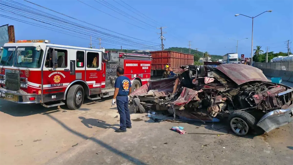 Intenta rebasar por la derecha y se impacta contra la caja de un tráiler estacionado, en la salida sur de Mazatlán
