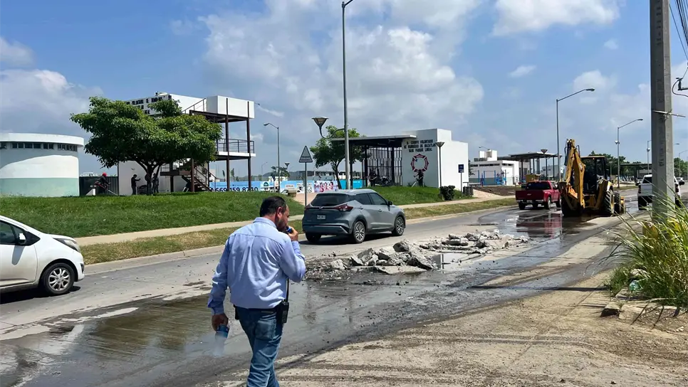 Por su parte el personal de JUMAPAM, continúo haciendo sus labores de reparación, y al ver que no se corría peligro rehabilitaron un carril a la circulación vial.