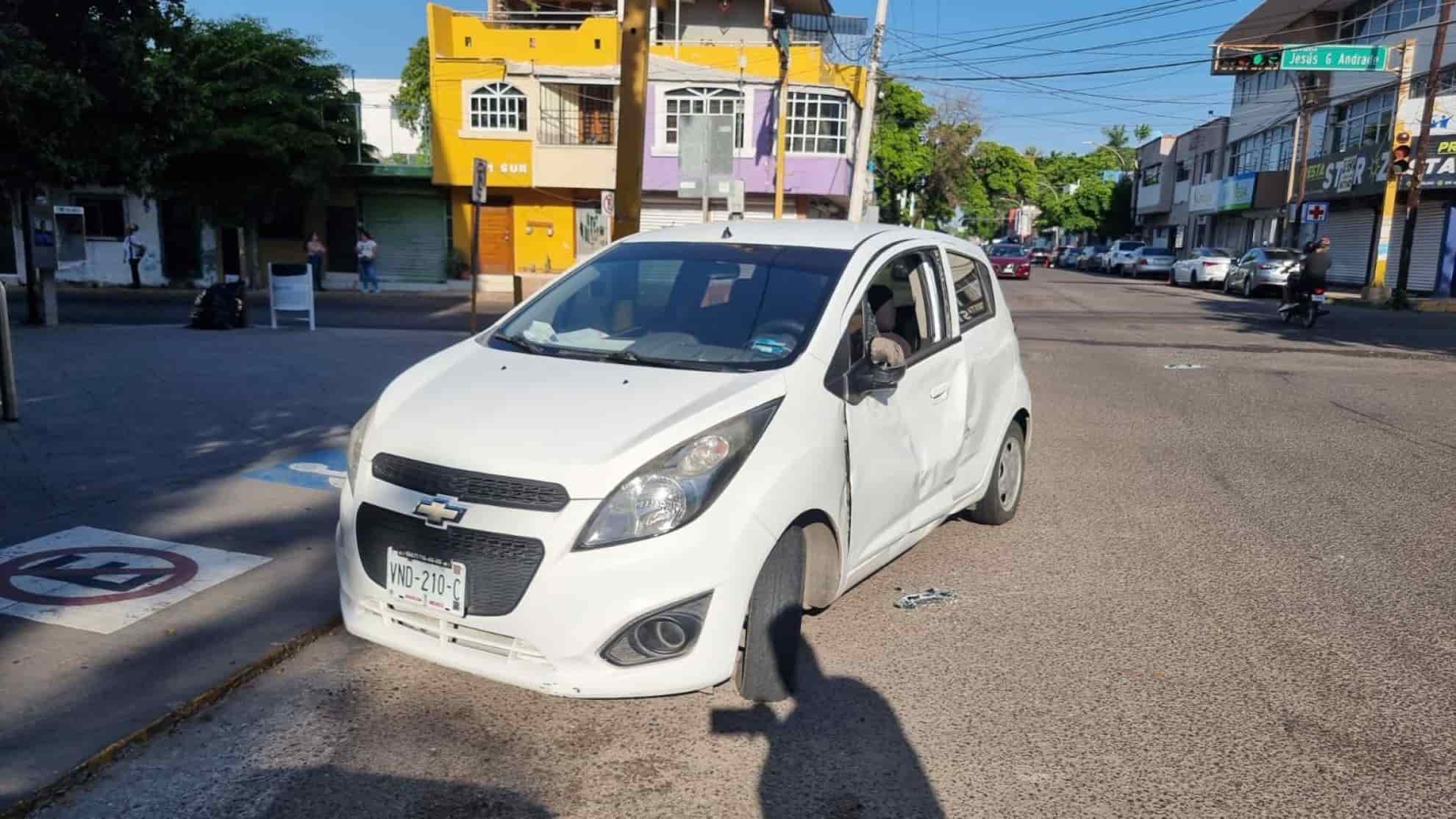 Motociclista se impacta contra un sedán en el sector Centro de Culiacán