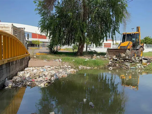 Cinco colonias inundadas por desbordamiento de un canal en Los Mochis, a causa de la basura que obstruyo el flujo. Del lugar retiraron camiones completos de basura, principalmente llantas, hieleras, y todo tipo de plásticos, hasta un rotoplas.