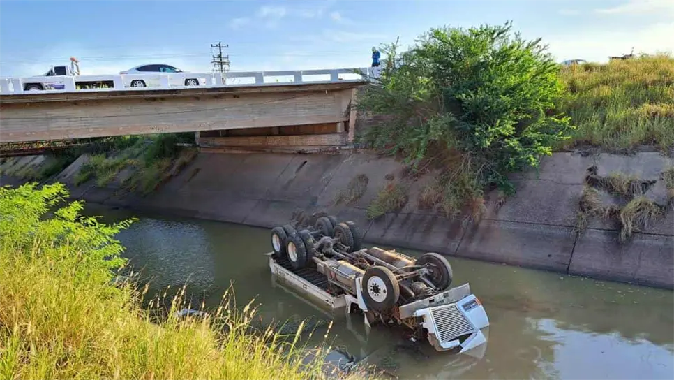 Conductor muere prensado tras caer a un canal en Guamúchil