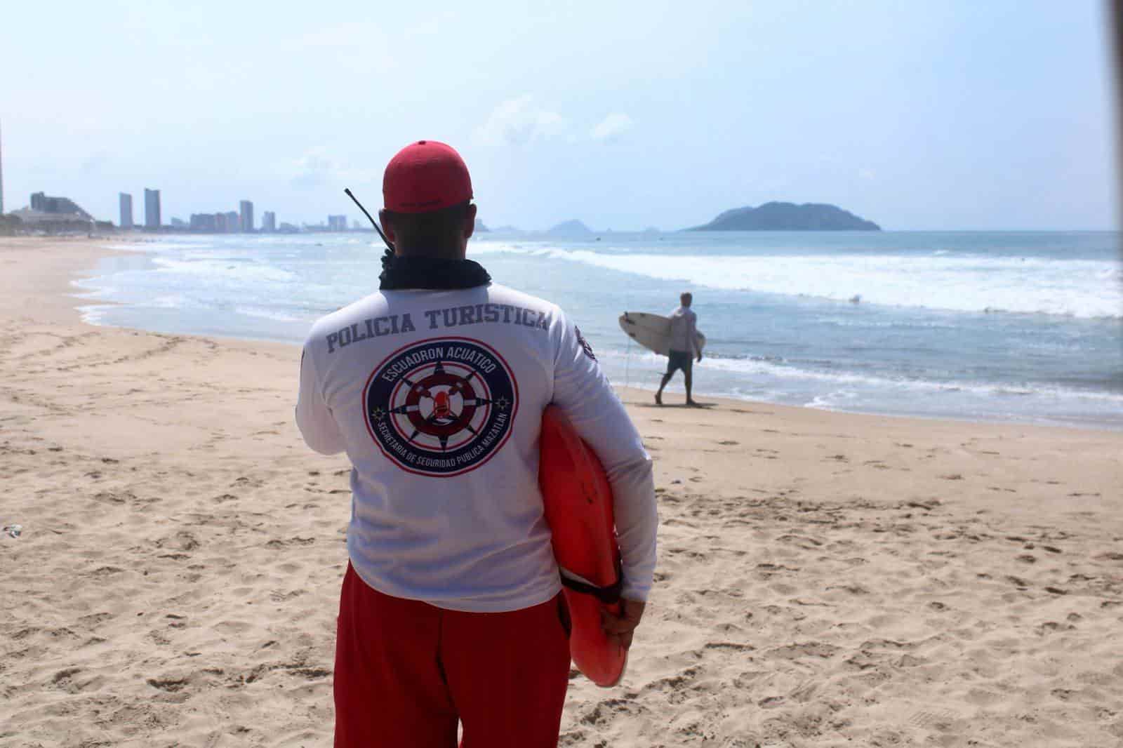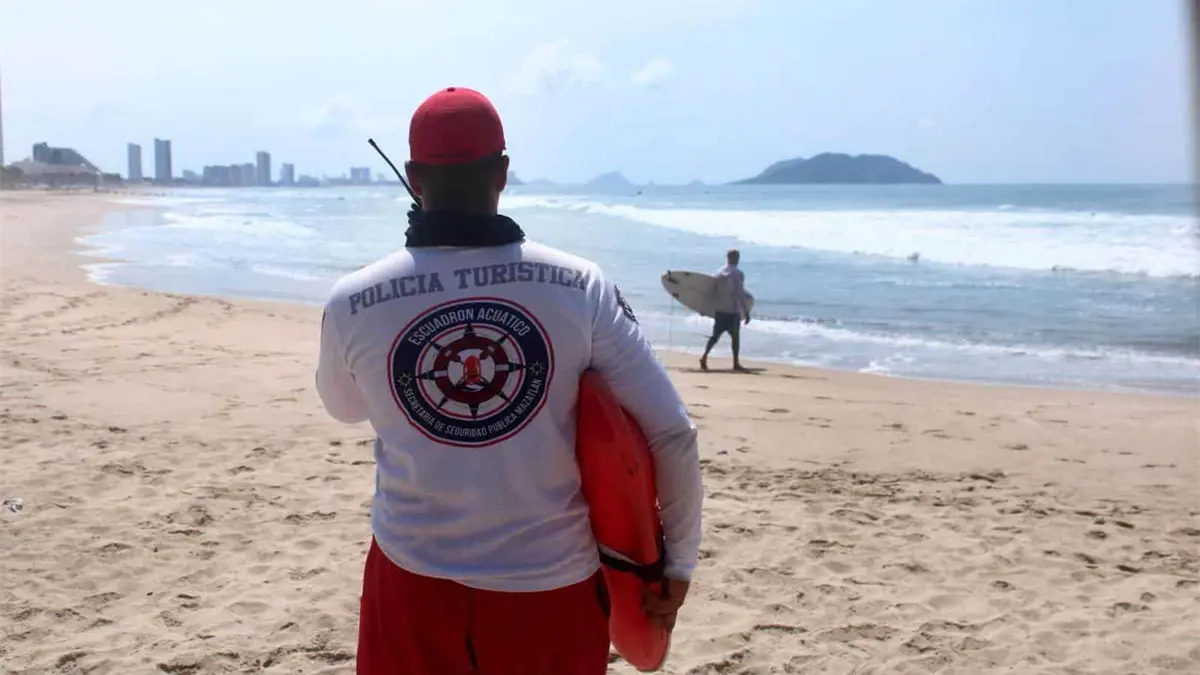 Policía Acuática rescata a pareja que era arrastrada por el mar en Mazatlán