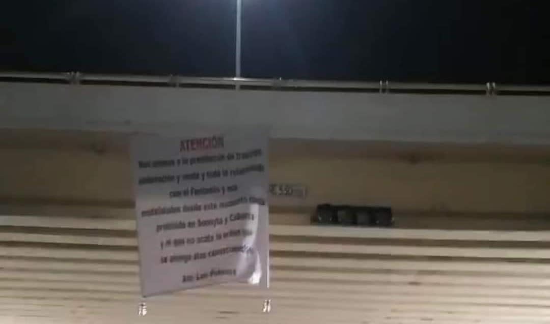 En el marco de la reunión bilateral sobre seguridad de altos funcionarios de Estados Unidos con México, y a unos días de que colocaran 11 narcomantas «Los Chapitos» en Sinaloa, también colgaron lonas con mensajes en Sonora, en donde se deslindan de la venta, distribución y tráfico de fentanilo.