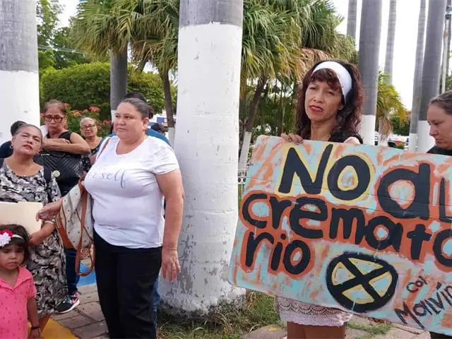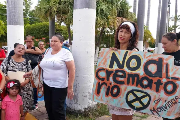 Vecinos de la colonia Las Malvinas, en la ciudad de Los Mochis, se manifestaron la mañana de este viernes, al exterior del Palacio Municipal para exigir la suspensión definitiva de la construcción de un supuesto crematorio y fosa común.