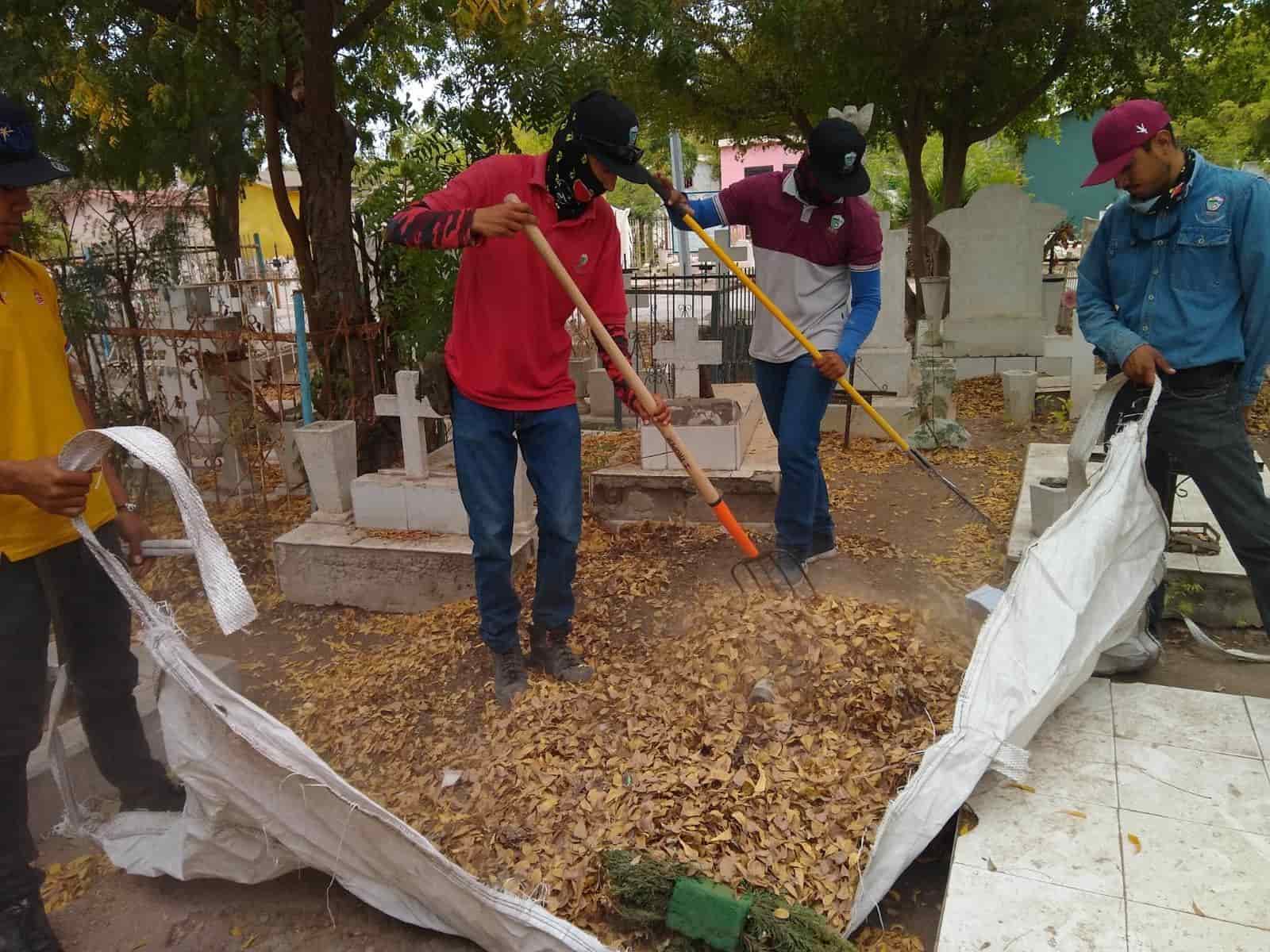 La Dirección de Servicios Públicos de Ahome se encuentra trabajando con más de 50 elementos operativos en la limpieza de los tres panteones municipales, ubicados dentro de la ciudad de Los Mochis y en las diferentes sindicaturas, para la celebración del Día de Muertos, el próximo 1 y 2 de noviembre.