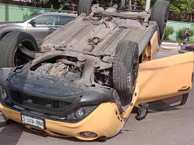 Seguido de esta acción, la fémina en lugar de frenar se vehículo y presionó el acelerador, para después subirse al acotamiento, lo que ocasionó que el vehículo terminara volcado en mitad de la rúa.