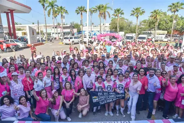 El alcalde de Ahome, Gerardo Octavio Vargas Landeros, acompañado de su esposa, Mónica Torres de Vargas, Presidenta del DIF Ahome, encabezó la tradicional Caminata Rosa, para conmemorar el Día Internacional de la Lucha contra el Cáncer de mama, así como el arranque oficial a la jornada de actividades de concientización.