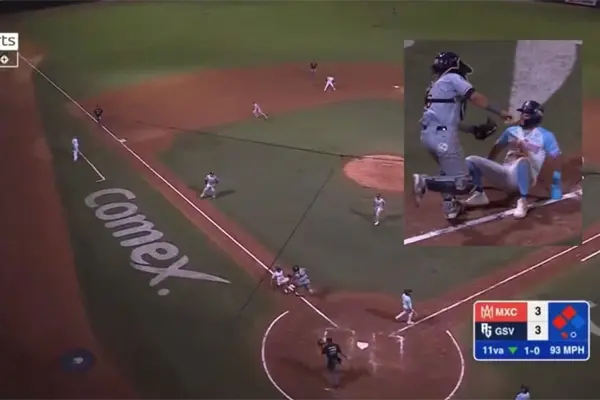 Tras el lanzamiento del pitcher inició la persecución, pues fue en ese momento en el que Jorge Flores inició su intento por robarse el home; el catcher se movió rápidamente para intentar poncharlo y fue en ese momento en el que el jugador de Guasave se inclinó casi por completo para esquivar el out, llegar a home, anotar y darle la victoria a su equipo.