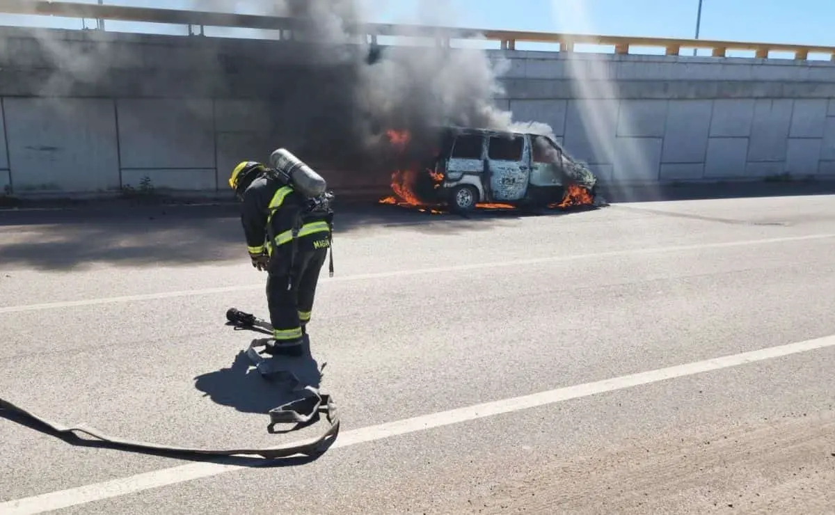 El incendio se dio, cuando la camioneta era conducida de oriente a poniente por La Costerita, y al llegar a la altura del puente que está por la avenida Geovanny Zamudio, se incendió.