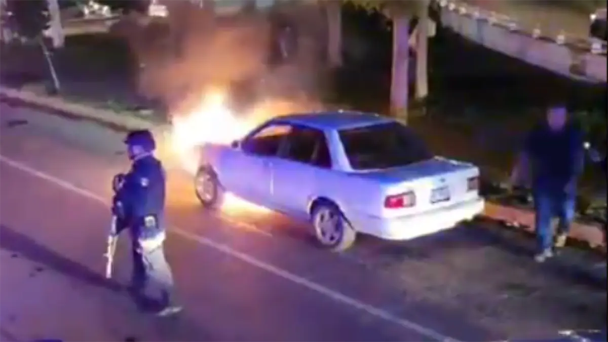 Policías estatales sofocan incendio en un vehículo en el sector Tres Ríos de Culiacán | VIDEO
