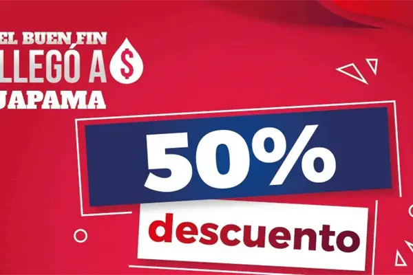 «Como ya es una práctica en los últimos años de participar con el Buen Fin, JAPAMA lo va a hacer, vamos a ofrecer el 50 por ciento de descuento en recargos para lo que es tarifa doméstica a partir del día viernes 17 hasta el martes 21; los invitamos a que acudan y que aprovechen, personas que tengan problemas de morosidad y que se les pasaron 2 o 3 mesecitos y que traen algún tema ahí de recargos, acudan y les vamos a quitar el 50 por ciento de los recargos con la liquidación del adeudo total», precisó.