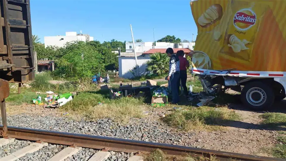 Tren carguero embiste camión con frituras, le quiso ganar el paso en el municipio de Sinaloa