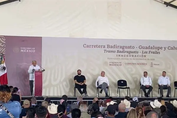 Andrés Manuel López Obrador ofreció un discurso para inaugurar oficialmente los 140 kilómetros de carretera, y al momento de nombrar a Badiraguato, no pudo hacerlo de forma correcta y durante 20 segundos nombró al municipio como badiguarato.