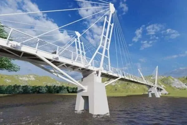Explicó que la obra consiste en un puente atirantado para peatones y ciclistas con una longitud de 138 metros, un ancho de calzada de 4 metros y una altura máxima de 34 metros.