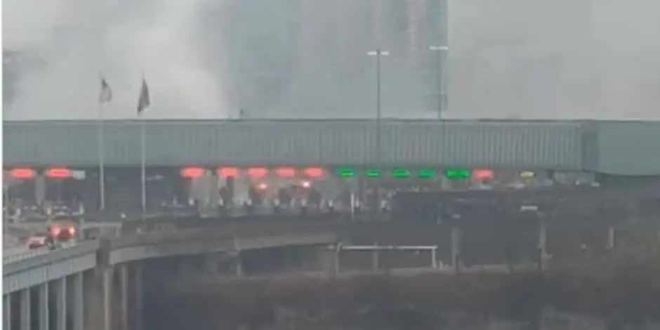 Se puede observar una enorme columna de humo en las instalaciones del cruce fronterizo entre Estados Unidos y Cánada, esto en el puente Rainbow.