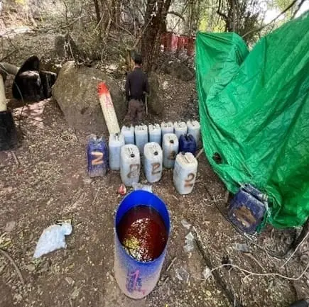 De acuerdo con la investigación, elementos de la Guardia Nacional ubicaron un predio en las inmediaciones del poblado Cortijos de Guatenipa, en Badiraguato, Sinaloa, que era utilizado para la probable elaboración de drogas sintéticas e hicieron entrega del sitio a la Policía Federal Ministerial (PFM) y personal de Servicios Periciales de esta institución, para realizar labores de inspección, procesamiento e investigación.