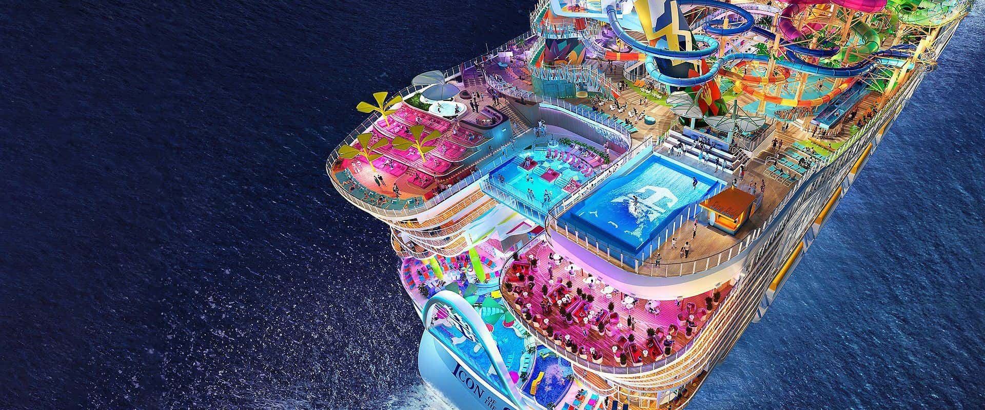 Royal Caribbean es líder en la industria de los cruceros, con una flota de 28 barcos que navegan por todo el mundo. Antes del «Icon of the Seas», su «Wonder of the Seas» era el crucero más grande del mundo, con mil 188 pies de eslora y 235 mil 600 toneladas brutas.