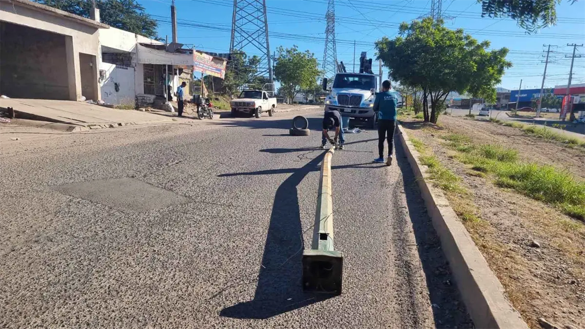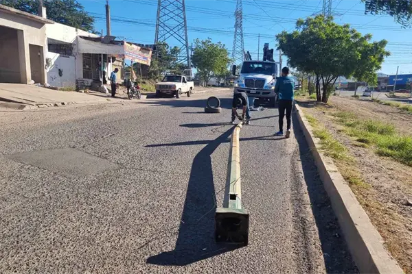 Un poste de luz del municipio Culiacán quedó destrozado después que fue derrumbado por un tráiler que transitaba por la colonia 22 de Diciembre.