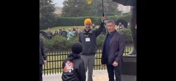 Cabe señalar que la lluvia no fue impedimento para que ambos recrearan la famosa escena fuera del restaurante.
